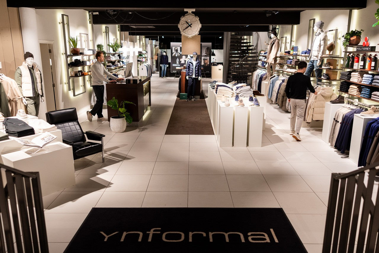 Jong en casual. Beneden vind je onze Ynformal-afdeling. Zoals de naam doet vermoeden, staat hier een jongere, meer casual stijl centraal. Denk aan straight jeans van Blue de Gênes, 7 For All Mankind, boxy T-shirts van Genti en sneakers van D.A.T.E., Nubikk en Mercer.